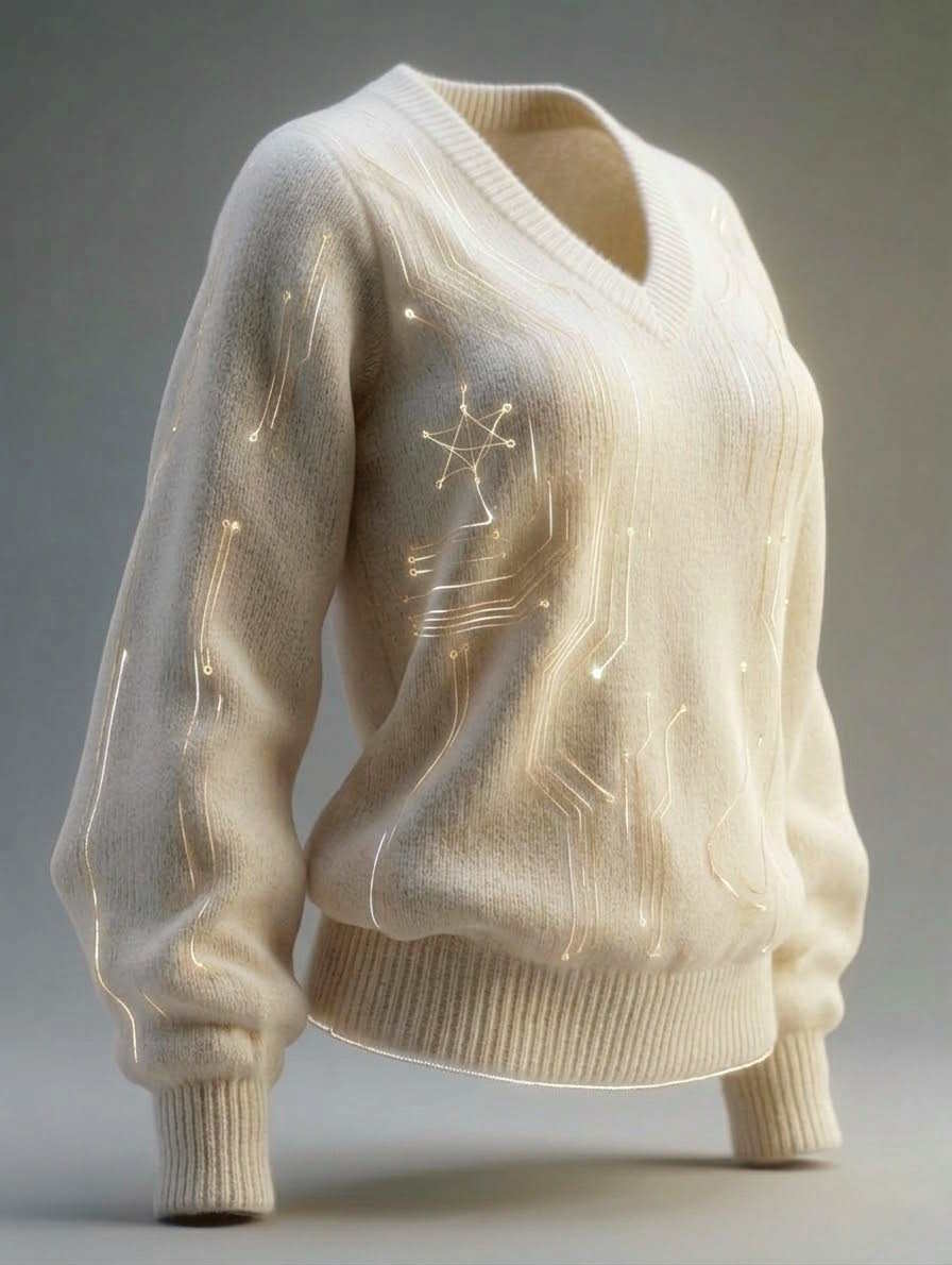 Softness and technology meet at the intersection of precision and emotion. Cashmere, distilled to the lightest form. A dialogue between human warmth and digital intelligence. Quiet strength. Pure design. The future of softness begins here.